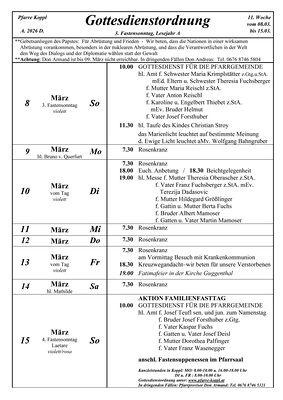 18:00 Uhr Rosenkranz anschl. Fatimafeier
